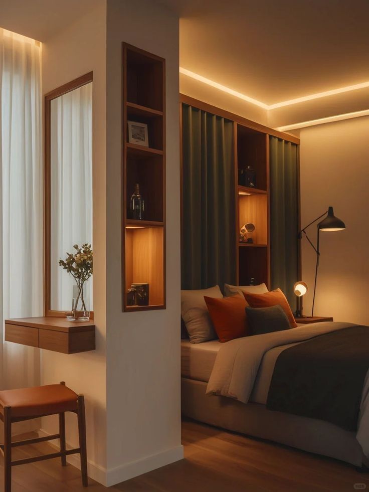 - Quarto: prefira luz amarela suave. Abajures ou pendentes ao lado da cama são funcionais e decorativos.